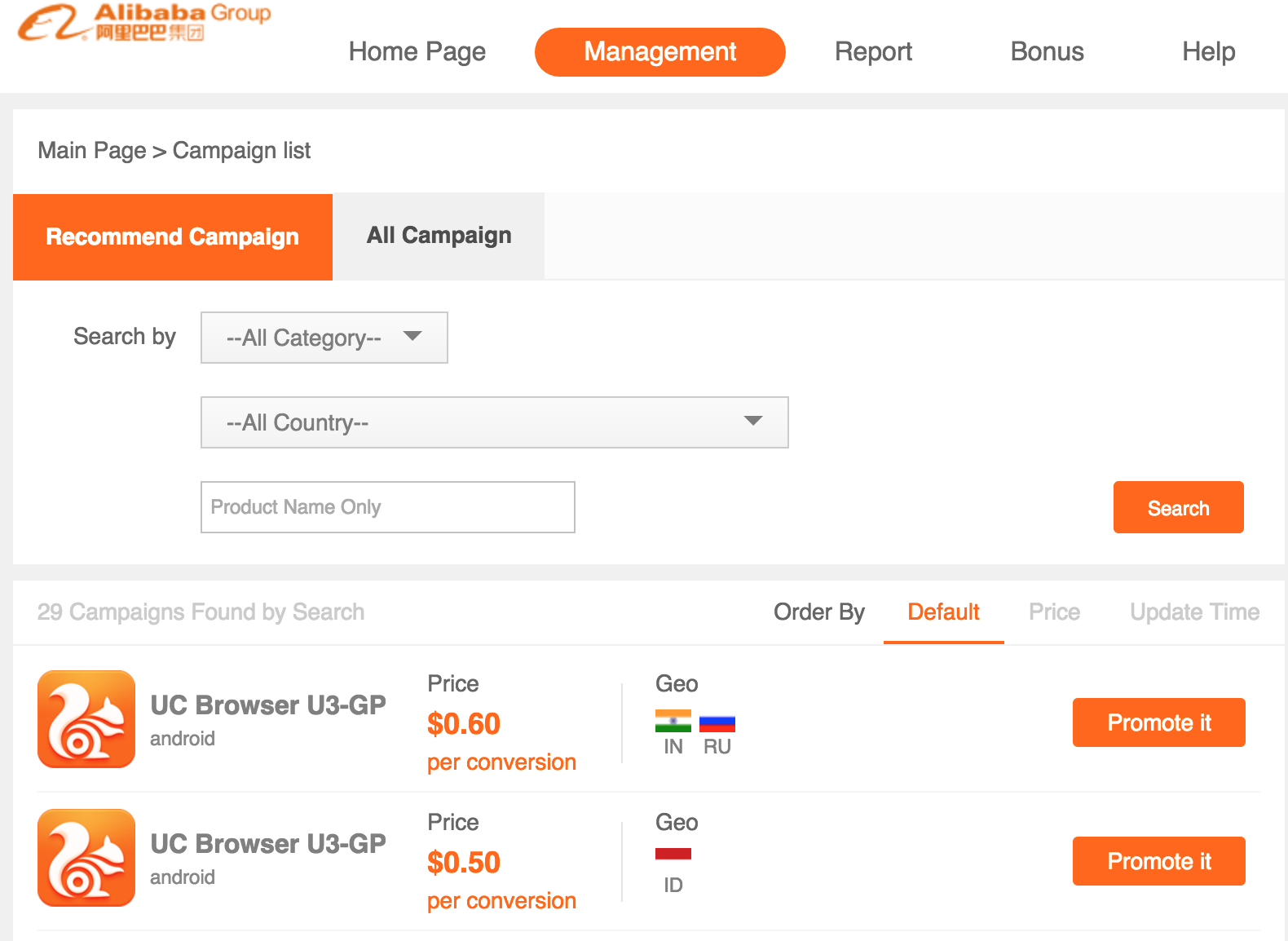 1.Recommend Campaign - we recommend the HOT campaign for you2.All Camoaign - You can find all campaigns.3.It is available to search by caregory/country/product name.