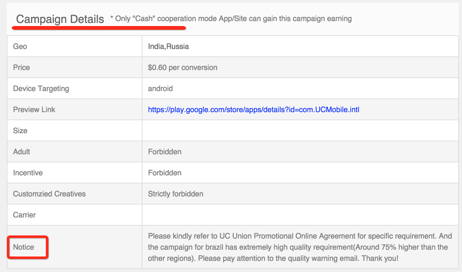 3. Attention!!! Please read CAMPAIGN DETAIL carefully, there are some requitments by advertisers, such as quality Monitoring, adult or incent traffic.etc..