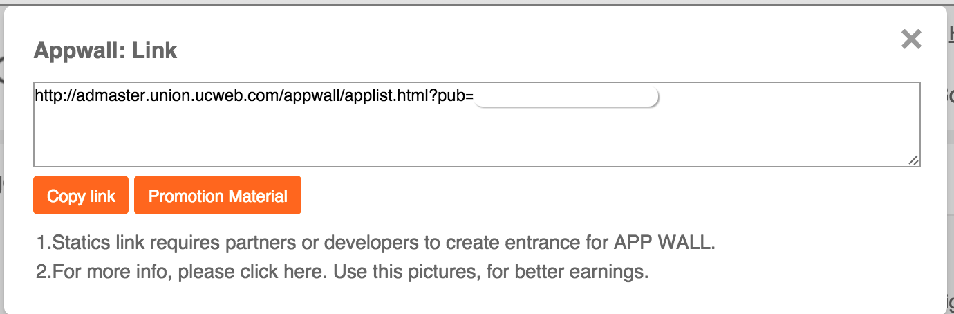 2.3 FOR Appwall cooperation partner, to get appwall link, Click Copy link button to copy the code.