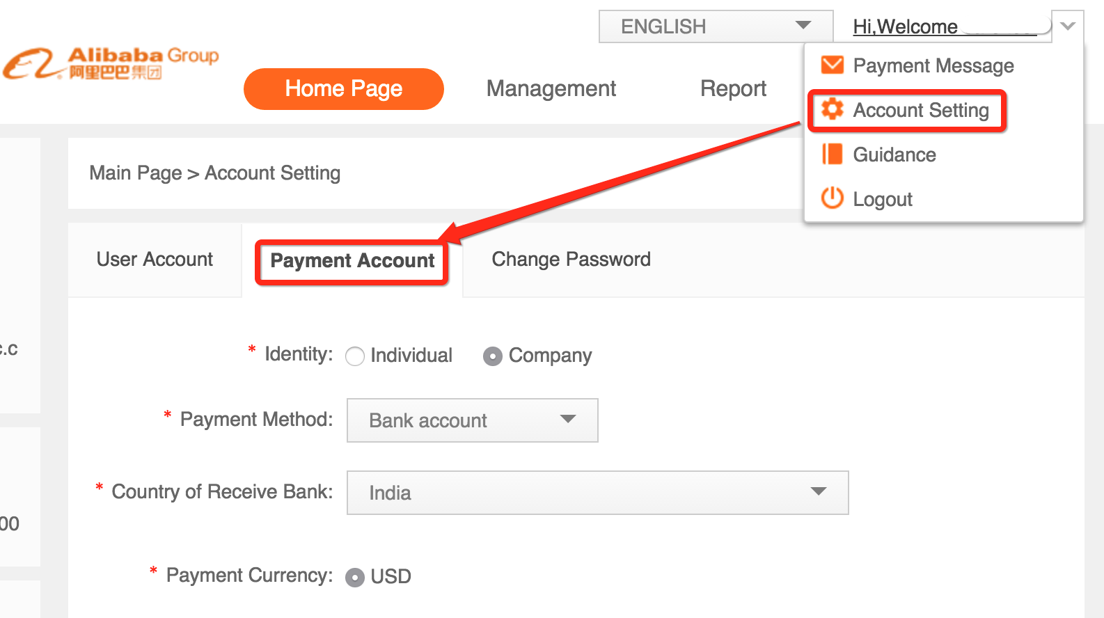 Please log in www.uc-union.com, click Account Setting to fill in Payment Account information.
