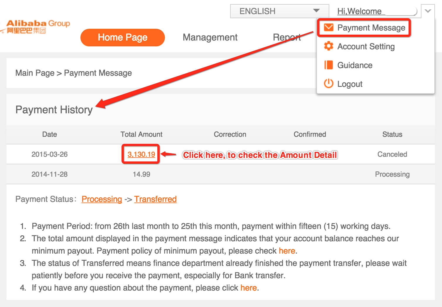 Please log in www.uc-union.com, click Payment Message to check account earnings for each month and payment status.